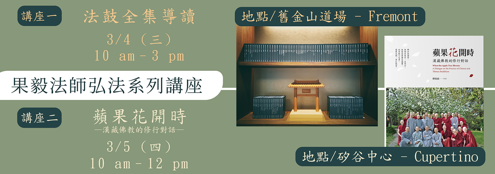 道場公告: 一、2/28(日)適逢舉辦英文禪一,舊金山道場(Fremont)將暫停參訪。 二、3/1 (日)起,《福田班》進行的日期,舊金山道場(Fremont)將暫停參訪。 聖嚴法師《108自在語》 1. 需要的不多,想要的太多。 2. 知恩報恩為先,利人便是利己。 3. 盡心盡力第一,不爭你我多少。 4. 慈悲沒有敵人,智慧不起煩惱。 5. 忙人時間最多,勤勞健康最好。 6. 布施的人有福,行善的人快樂。 7. 心量要大,自我要小。 8. 要能放下,才能提起。提放自如,是自在人。 9. 識人識已識進退,時時身心平安; 知福惜福多培福,處處廣結善緣。 10. 提得起放得下,年年吉祥如意; 用智慧種福田,日日都是好日。 11. 身心常放鬆,逢人面帶笑; 放鬆能使我們身心健康,帶笑容易增進彼此友誼。 12. 話到口邊想一想,講話之前慢半拍。 不是不說,而是要惜言慎語。 13. 在生活中,不妨養成:「能有,很好;沒有,也沒關係」的想法, 便能轉苦為樂,便會比較自在了。 14. 四安:安心、安身、安家、安業。 15. 四要:需要、想要、能要、該要。 16. 四感:感恩、感謝、感化、感動。 17. 四它:面對它、接受它、處理它、放下它。 18. 四福:知福、惜福、培福、種福。 19. 能要、該要的才要;不能要,不該要的絕對不要。 20. 感恩能使我們成長,報恩能助我們成就。 21. 感謝給我們機會,順境、逆境,皆是恩人。 22. 遇到好事,要隨喜、讚嘆、鼓勵,並且虛心學習。 23. 少批評、多讚美,是避免造口業的好方法。 24. 平常心就是最自在、最愉快的心。 25. 踏實地走一步路,勝過說一百句空洞的漂亮語。 26. 知道自己的缺點愈多,成長的速度愈快,對自己的信心也就愈堅定。 27. 多聽多看少說話,快手快腳慢用錢。 28. 唯有體驗了艱苦的境遇,才會有精進奮發的心。 29. 踏踏實實做人,心胸要廣大;穩穩當當做事,著眼宜深遠。 30. 忙而不亂,累而不疲。 31. 忙得快樂,累得歡喜。 32. 「忙」沒關係,不「煩」就好。 33. 工作要趕不要急,身心要鬆不要緊。 34. 應該忙中有序的趕工作,不要緊張兮兮的搶時間。 35. 不要以富貴貧賤論成敗得失,只要能盡心盡力來自利利人。 36. 任勞者必堪任怨,任事者必遭批評。怨言之下有慈忍,批評之中藏金玉。 37. 隨遇而安,隨緣奉獻。 38. 成功的三部曲是:隨順因緣、把握因緣、創造因緣。 39. 見有機緣宜把握,沒有機緣要營造,機緣未熟不強求。 40. 人生的起起落落,都是成長的經驗。 41. 用智慧處理事,以慈悲關懷人。 42. 以智慧時時修正偏差,以慈悲處處給人方便。 43. 慈悲心愈重,智慧愈高,煩惱也就愈少。 44. 面對許多的情況,只管用智慧處理事,以慈悲對待人, 而不擔心自己的利害得失,就不會有煩惱了。 45. 心隨境轉是凡夫;境隨心轉是聖賢。 46. 大鴨游出大路,小鴨游出小路,不游就沒有路。 47. 山不轉路轉,路不轉人轉,人不轉心轉。 48. 「精進」不等於拼命,而是努力不懈。 49. 船過水無痕,鳥飛不留影,成敗得失都不會引起心情的波動, 那就是自在解脫的大智慧。 50. 給人方便等於給自己方便。 51. 甘願吃明虧,是仁者;受辱吃暗虧,是愚蠢。 52. 壓力通常來自對身外事物過於在意,同時也過於在意他人的評斷。 53. 用感恩的人、用報恩的心,來做服務的工作,便不會感到倦怠與疲累。 54. 隨時隨地心存感激,以財力、體力、智慧、心力、來做一切的奉獻。 55. 生命的意義是為了服務,生活的價值是為了奉獻。 56. 人生的目標,是來受報、還願、發願的。 57. 人的價值,不在壽命的長短,而在貢獻的大小。 58. 過去已成虛幻,未來尚是夢想,把握現在最重要。 59. 不用牽掛過去,不必擔心未來,踏實於現在,就與過去和未來同在。 60. 智慧,不是知識、不是經驗、不是思辯,而是超越自我中心的態度。 61. 積極人生,謙虛滿分;自我愈大,不安愈多。 62. 上等人安心於道,中等人安心於事,下等人安心於名利物欲。 63. 你是有那些身分的人,就應該做那些身分的事。 64. 在安定和諧中、把握精彩的今天,走出新鮮的明天。 65. 擔心,是多餘的折磨;用心,是安全的動力。 66. 財富如流水,佈施如挖井。井愈深,水愈多;佈施的愈多,財富則愈大。 67. 面對生活,要有「最好的準備,最壞的打算」。 68. 只要還有一口呼吸在,就有無限的希望,就是最大的財富。 69. 救苦救難的是菩薩,受苦受難的是大菩薩。 70. 超越生老病苦三原則:活得快樂、病得健康、老得有希望。 71. 超越死亡三原則:不要尋死、不要怕死、不要等死。 72. 死亡不是喜事,也不是喪事,而是一件莊嚴的佛事。 73. 每一個孩子,都是幫助父母成長的小菩薩。 74. 對青少年,要關心不要擔心,要誘導不要控制,用商量不用權威。 75. 愛你的孩子,與其擔心,不如祝福吧! 76. 夫妻是倫理的關係,不是「論理」的關係。 77. 能不亂丟垃圾,隨時清撿垃圾,都是做的功德。 78. 眼光,是你的智慧;運氣,是你的福德。 79. 喜愛的就想佔有,討厭的就會排斥,患得患失,煩惱就來了。 80. 經常少欲知足的人,才是無虞匱乏的富人。 81. 心不平安是真正的苦,身體的病痛不一定是苦。 82. 明知心不平安是苦事,就趕快以持念「南無觀世音菩薩」來安心吧! 83. 現在擁有的,就是最好的。擁有再多也無法滿足,就等於是窮人。 84. 不要用壓抑來控制情緒,最好用觀想、用佛號、用祈禱,來化解情緒。 85. 好話大家說,好事大家做,好運大家轉。 86. 大家說好話,大家做好事,大家轉好運。 87. 每人每天多說一句好語,多做一件好事,所有小小的好,