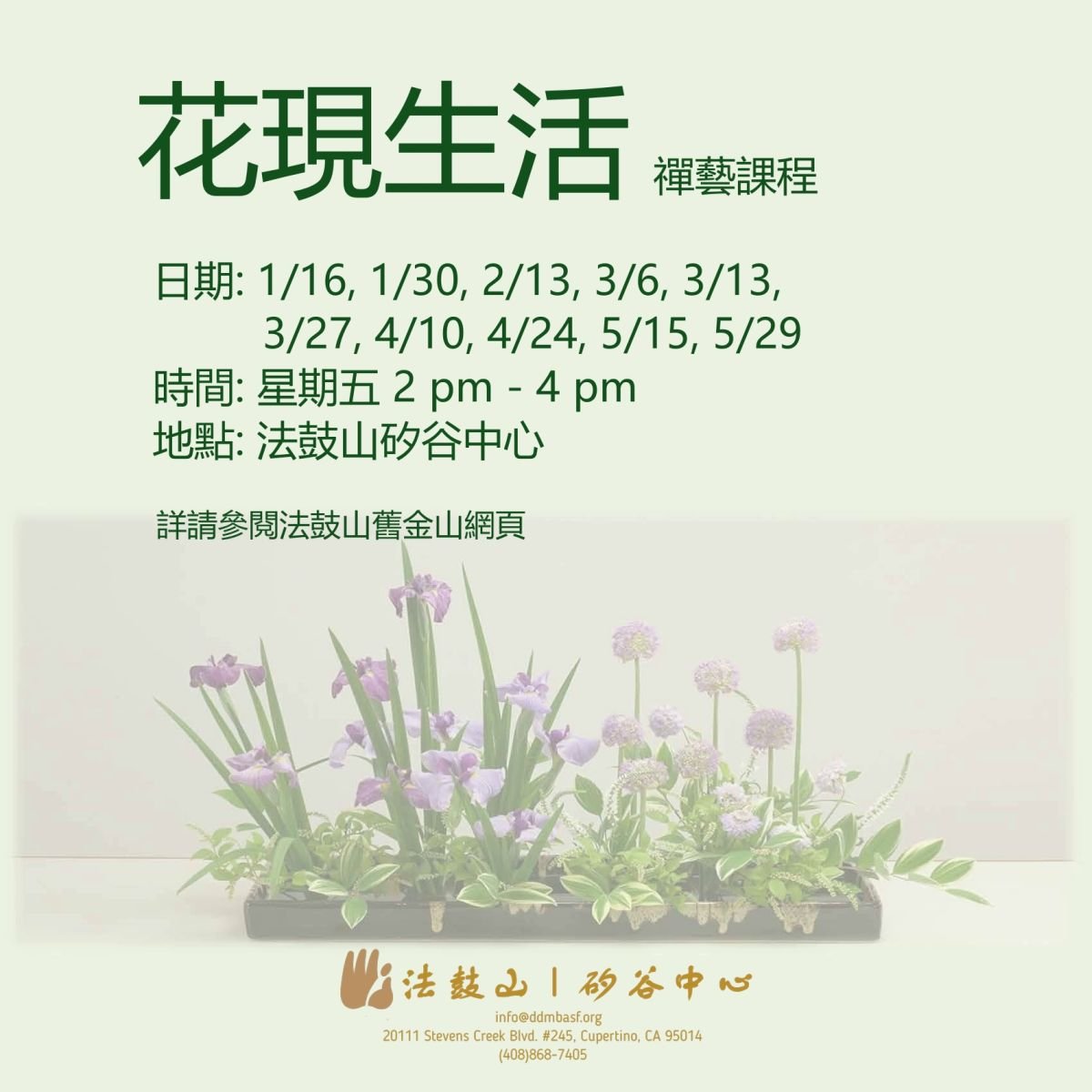 【費用】課堂費用每堂二十元,將捐贈法鼓山舊金山道場 (可開立捐款收據) + 花材費用每堂十五元,報名時與課堂費用一起繳交。